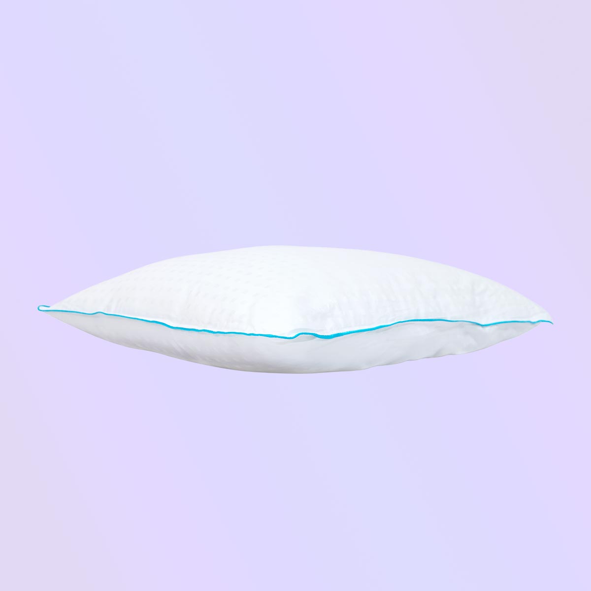 Vista lateral de la almohada CalmRest mostrando su altura y diseño ergonómico.