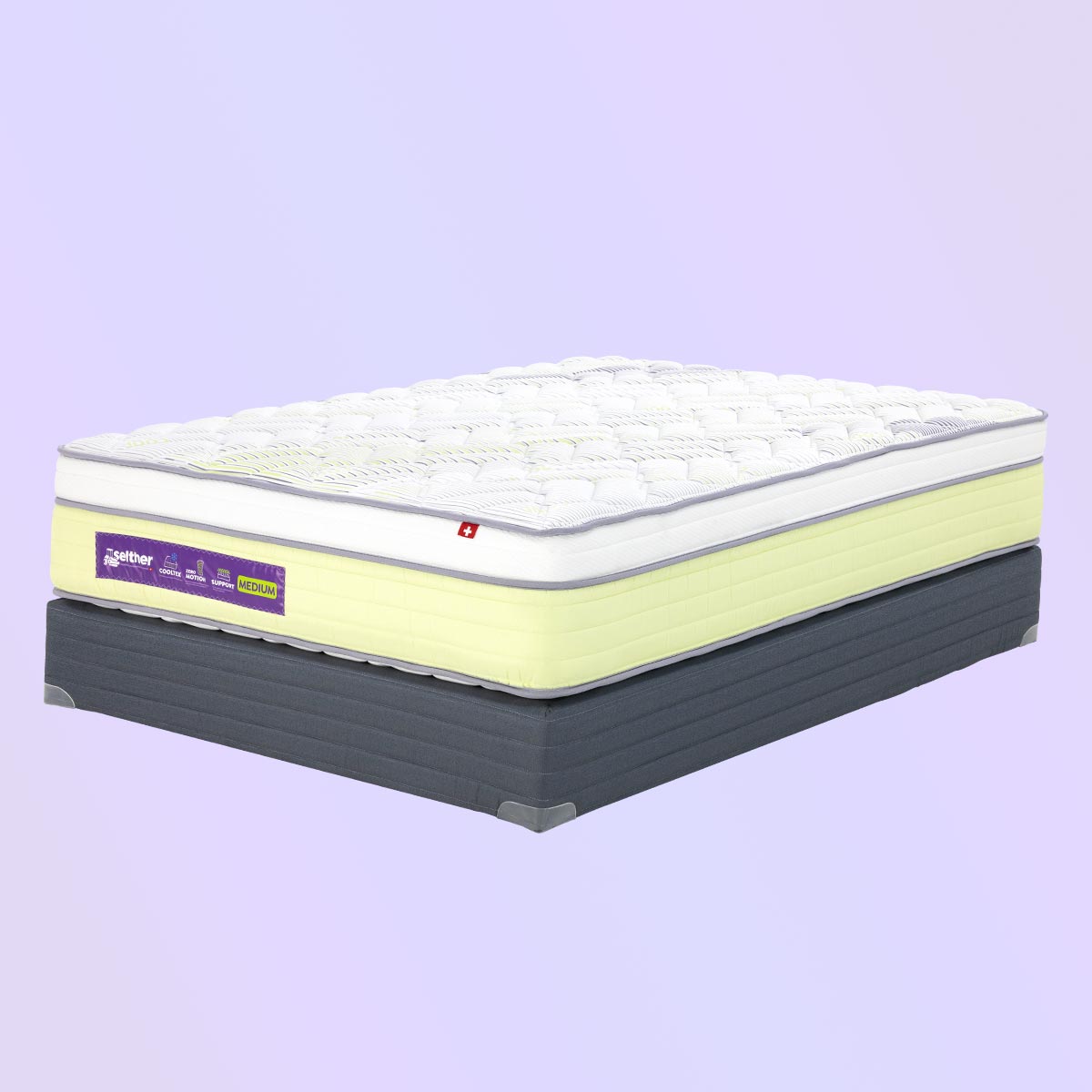 Colchón de confort medio, con sistema de resortes encapsulados con 5 zonas de soporte que brindan cero transmisión de movimiento, con espumas de alta densidad para un descanso reparador y tejidos de punto con frescura al tacto.