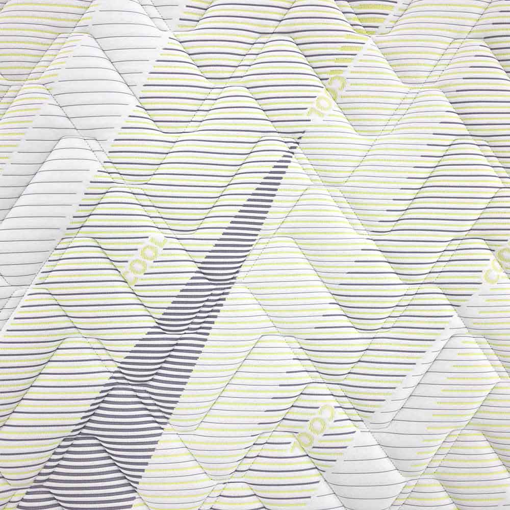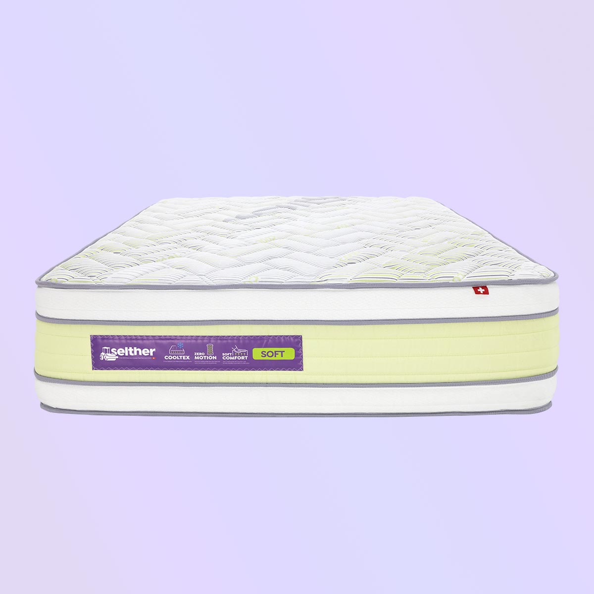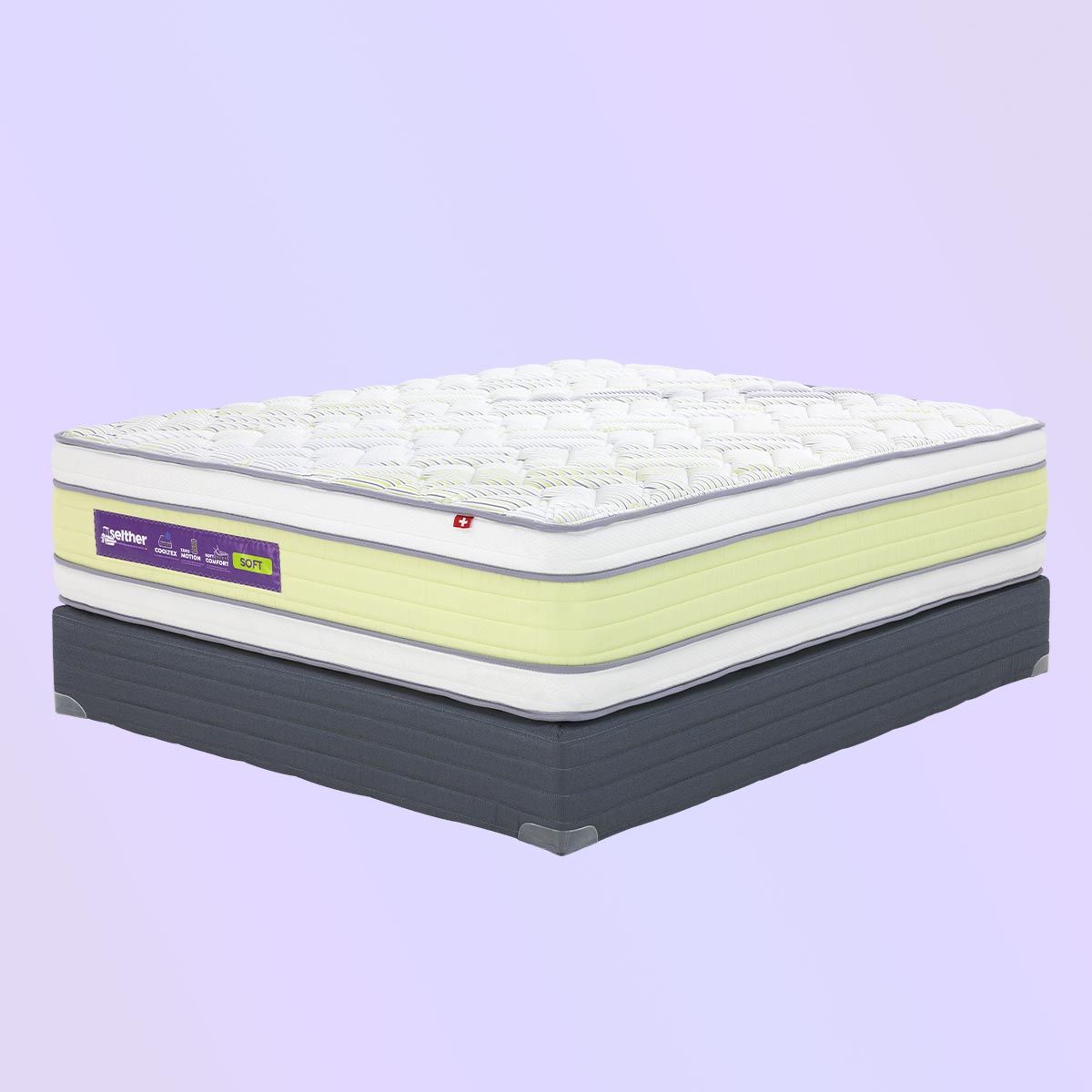 Colchón de confort suave, con sistema de resortes encapsulados con 5 zonas de soporte que brindan cero transmisión de movimiento, con una combinación de espumas de Memory Foam y espumas de alta densidad que brindan un alto nivel de confort, y tejidos de punto con frescura al tacto.